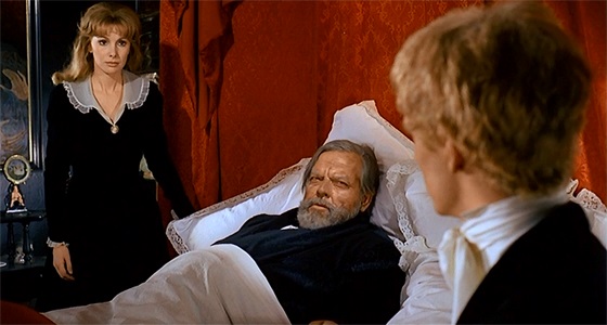 As mentioned, this is a surreal arthouse picture with horror elements, so it doesn’t function like a typical genre or even narrative film. The plot follows Jan (Mathieu Carrière) a sailor who returns to his hometown to find it, well, deserted. His childhood home has even been turned into a storefront. After being knocked unconscious in a bar, he is greeted by sister Nancy (Susan Hampshire). It looks like they’re in a ship’s cabin, but it is revealed that he has been taken to Malpertuis, the home of his uncle, Cassavius (Orson Welles).