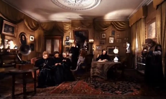There is a clear beginning, middle and end to this story, but it contains a great deal of surreal and interpretive scenes. It is almost like watching an eerie dream unfold, with its lead character struggling to get a grip on his surroundings. And that reaction is completely understandable. Some of the curious individuals besides those introduced include two other females in the family who look exactly like the sister (they are also played by Susan Hampshire). There is also an odd relative who lives in the walls named Lampernisse (Jean-Pierre Cassel), a creepy taxidermist Philarette (Charles Janssens) who looks eager to make Jan into his next stuffed figure, as well as the stuffy, greedy, yet also philandering Dideloo (Michel Bouquet).