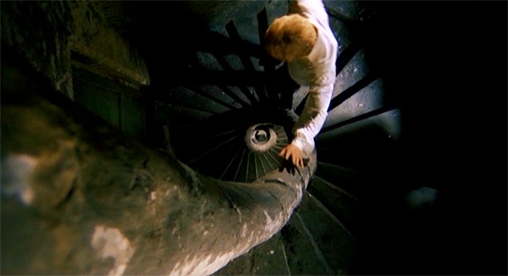 If the characters are strange, the environment is every bit as odd. This is a visually impressive movie, from the eerie and completely empty street exteriors (including an eerily foggy and unwelcoming garden), to long hallways lit by flames, a stairwell reminiscent of an eyeball, and a variety of large rooms with completely different styles and looks. One even has light that is cast from sources in a room actually painted on its walls. It all feels unwelcome and like something right out of a nightmare. If you let yourself view it like you’re seeing someone’s unsettling dream and just watch the individual try to find his way out, it’s an engaging and impressive experience. The images are striking and, as abnormal as it all is, I found the reveal effective and satisfying.